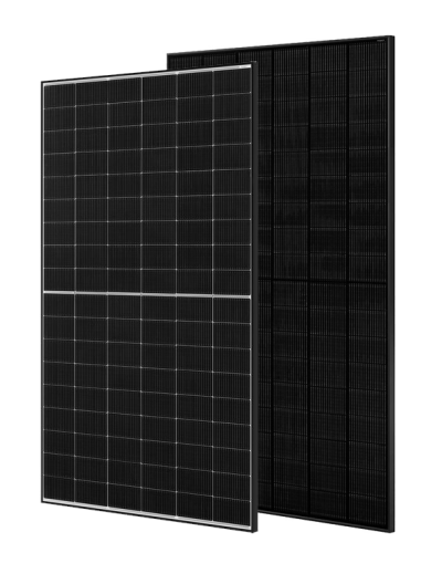Die Module sind mit weißen Einlagen oder auch komplett in Schwarz erhältlich. Die neueste monokristalline Technologie (TOP-con) bietet darüber hinaus gute Energiegewinnung, auch an bewölkten Tagen.